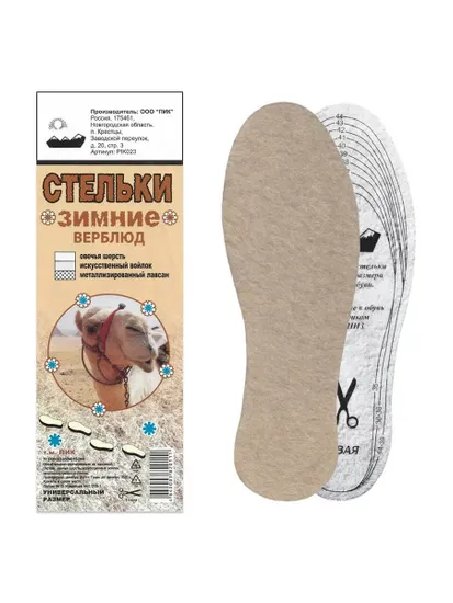 Стельки ПИК «Зимние Верблюд» состоят из нескольких слоев: овечьей шерсти, искусственного войлока и металлизированного лавсана.