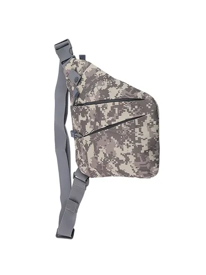Мужская сумка-кобура камуфляж обладает хватким цепляющим дизайном, при этом соответствуя всем необходимым критериям по удобству и вместительности. Ультратонкое изделие весом в 250 г способно вместить портмоне, планшет, паспорт, наличку, ключи и прочие мелкие обиходные предметы.