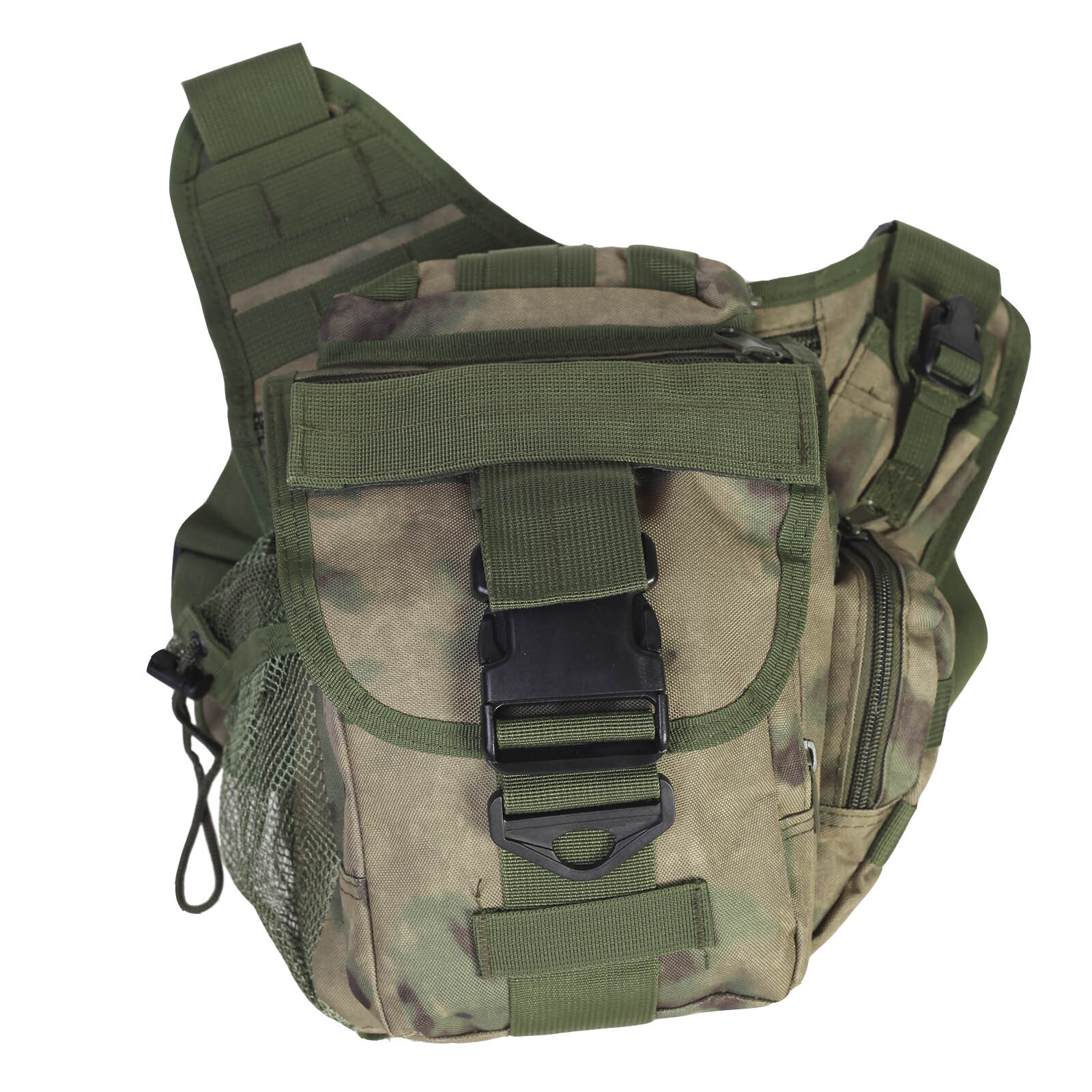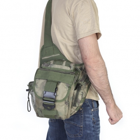 Тактическая сумка через плечо с элементами обвески MOLLE для крепления дополнительного снаряжения в походе, на охоте или рыбалке. Изготовлена из качественного водостойког нейлона OXFORD 600D.