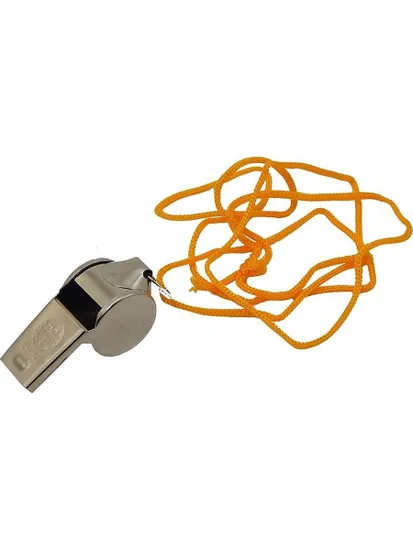 Свисток металлический со шнурком в индивидуальной упаковке