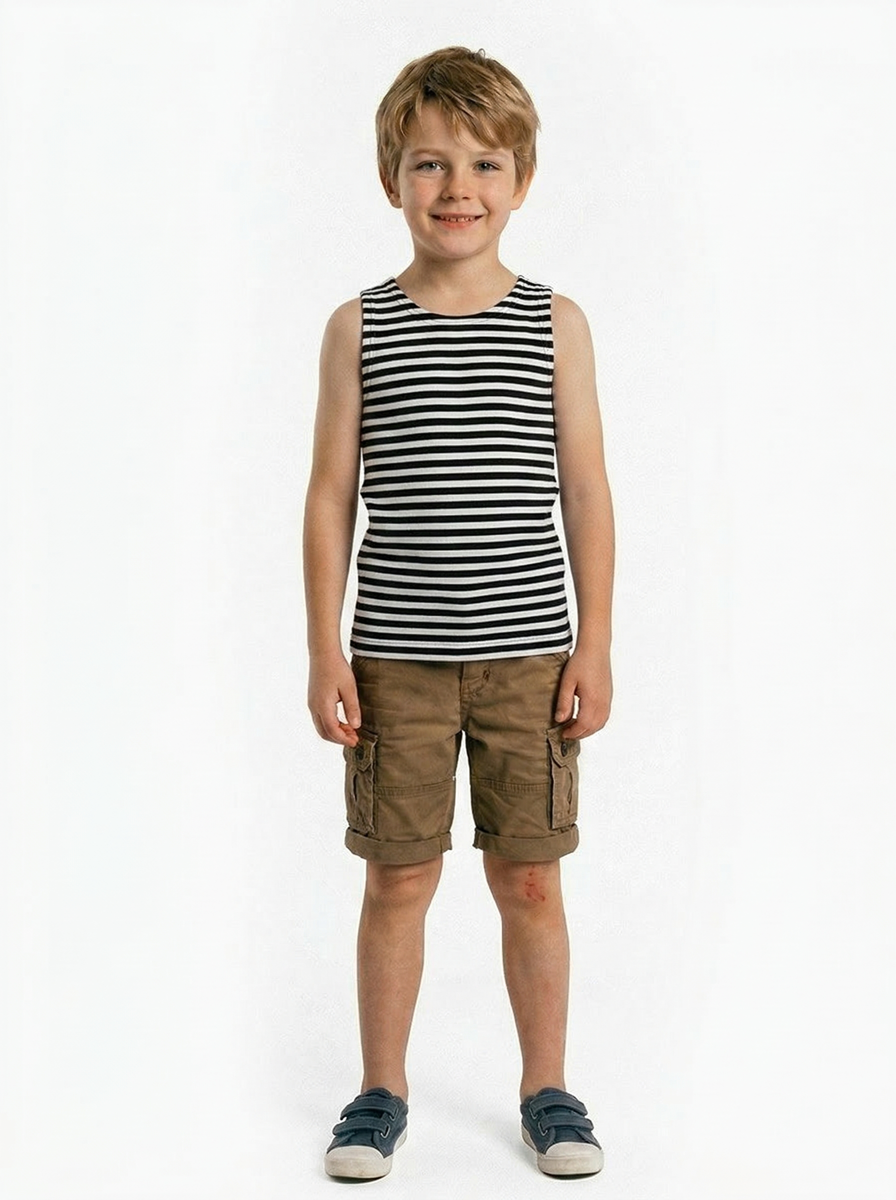 Детская тельняшка-майка черная из хлопка для повседневной носки и активного использования.