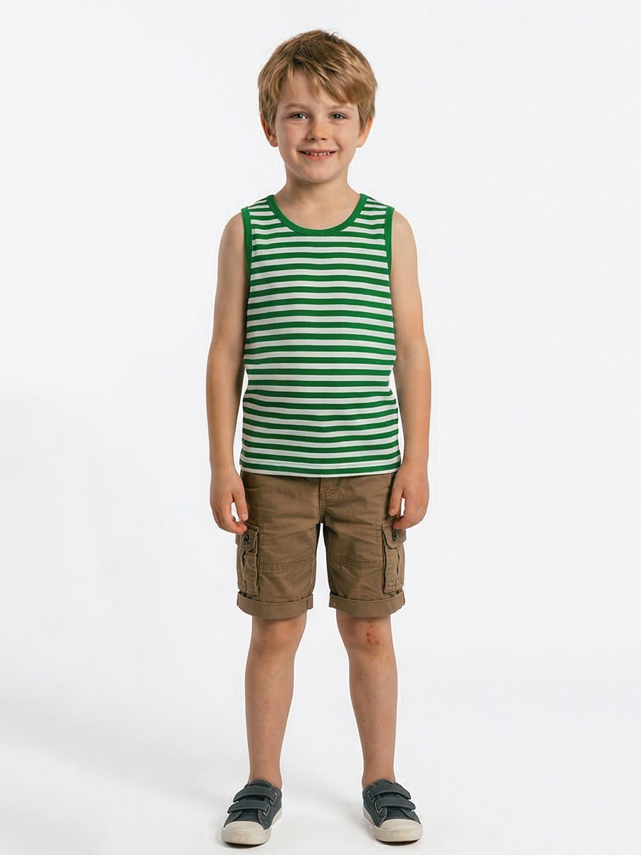 Детская тельняшка-майка из хлопка для повседневной носки и активного использования.