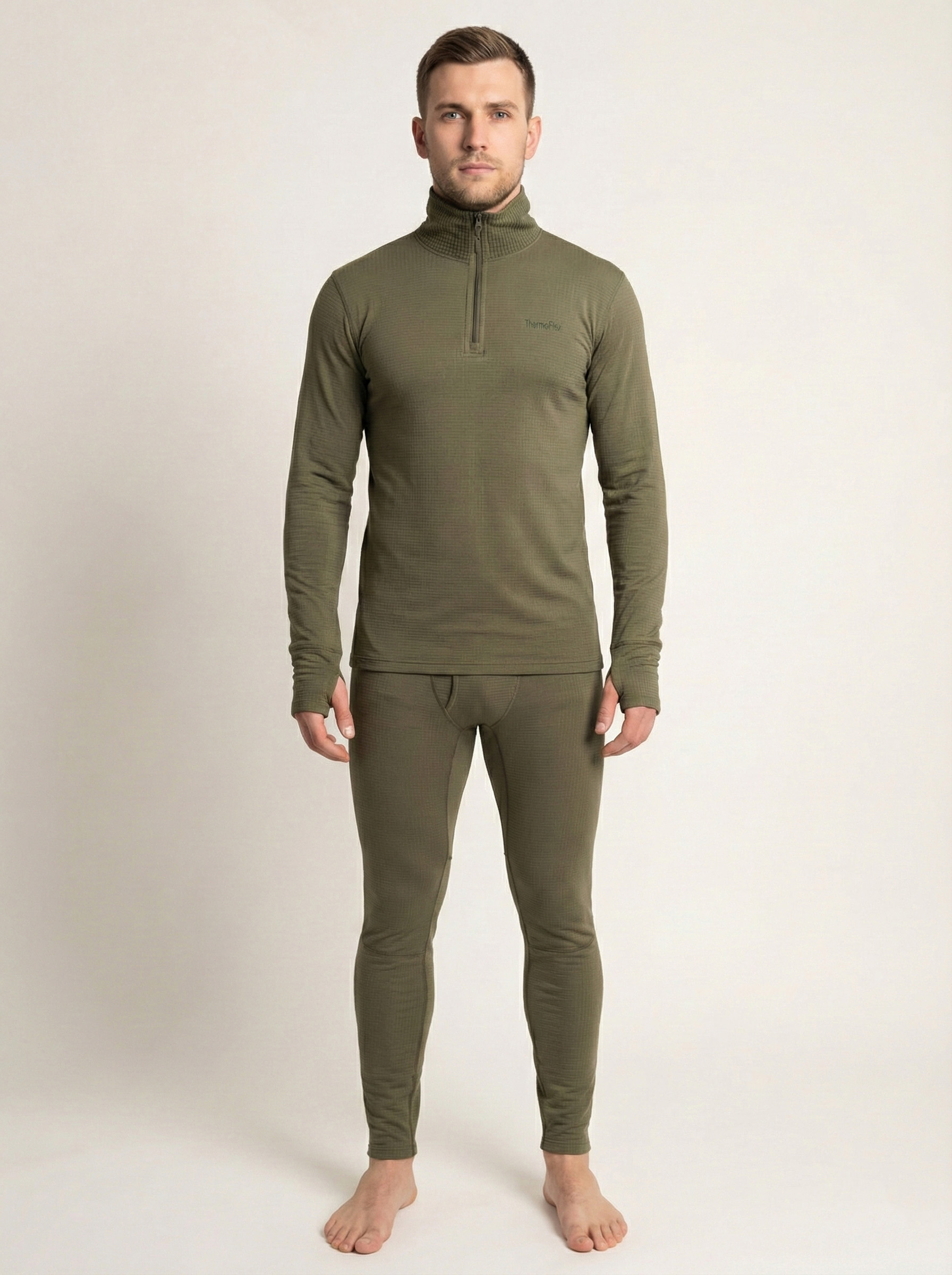 Перфорированное термобельё Thermo Flex в цвете олива - компактный и тёплый базовый слой для работы и задач в мороз, когда важны тепло, отвод влаги и свобода движений.