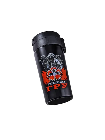 Ударопрочная металлическая ёмкость, герметически запирающейся крышка гарантирует что содержимое кружки не прольётся.