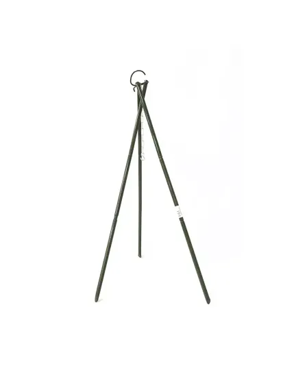 Тренога состоит из трех опор, соединенных в одной точке сверху, к этой же точке присоединен костровой крюк на который подвешивается казан, котелок или чайник. Каждая опора в свою очередь состоит из 3-х секций, благодаря чему компактно убирается в чехол после использования.