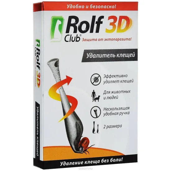Удалитель клещей RolfClub – это простой и безопасный способ для удаления паразитарных клещей разных размеров с тела животного или человека. Удалитель имеет удобную нескользящую ручку, легко крепится на связку ключей. Это незаменимый помощник при прогулках в лесу или других местах возможного заражения клещами.
