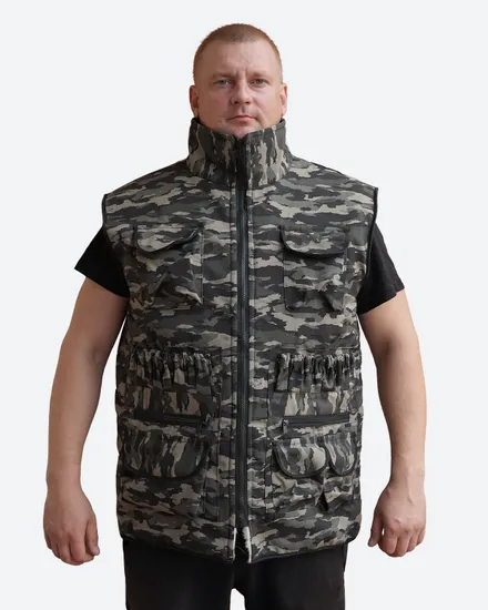 Жилет из смесовой ткани состав: 65% полиэстера и 35% хлопок, усиление рип-стоп.