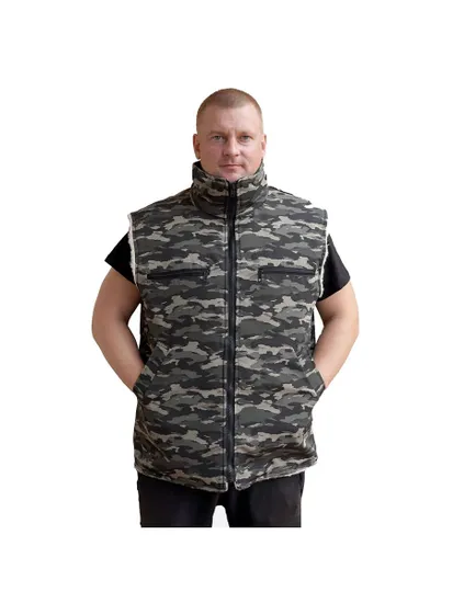Жилет из смесовой ткани состав :65% полиэстера и 35% хлопок.