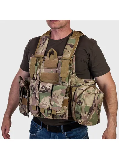 - Бронежилет укомплектован тактическими подсумками для крепления на систему Molle различного назначения и функционала в количестве 7 шт;